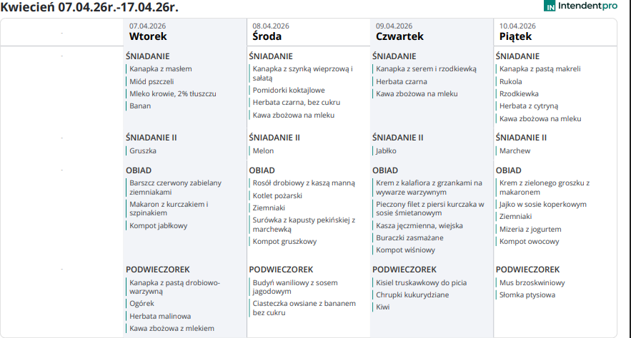 Poprzednia strona: plan dnia